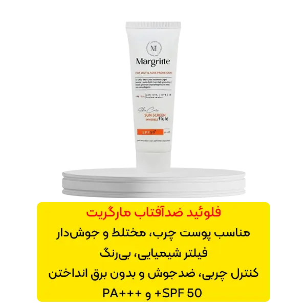 فلوئید ضد آفتاب مارگریت SPF 50 مناسب پوست چرب و مستعد آکنه
